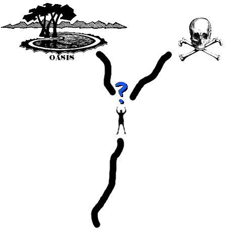 to the left or to the right. One way leads to an oasis and the other way is "the road